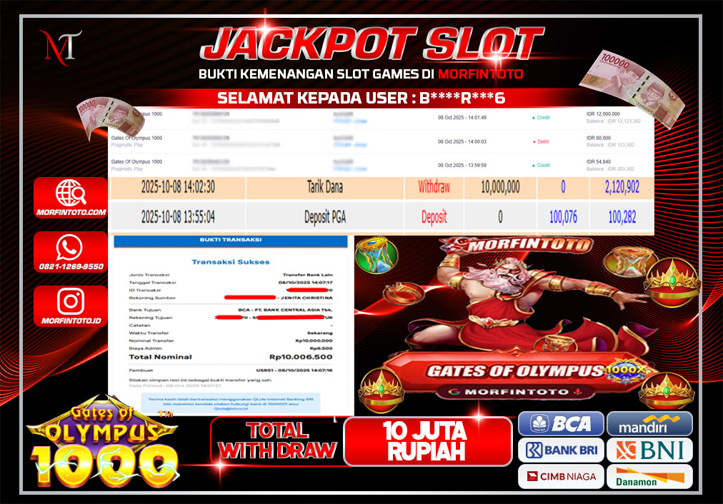 >> SELAMAT ATAS JACKPOT NYA USER ID: D******8 PERMAINAN SLOT GATES OF OLIMPUS 1000 PADA TANGGAL 08 OKTOBER 2025 DENGAN TOTAL KEMENANGAN Rp.10,000,000 DI BAYAR LUNAS!