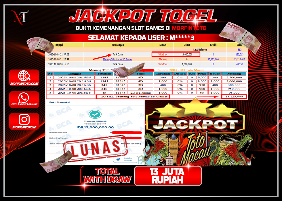 MORFINTOTO 100% DI BAYAR LUNAS !!