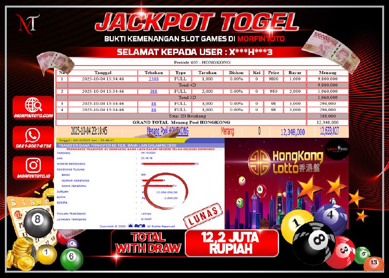 >> SELAMAT ATAS JACKPOT NYA USER ID: XxxxxHxxx0 PERMAINAN TOGEL HONGKONG LOTTO PADA TANGGAL 04 OKTOBER 2025 DENGAN TOTAL KEMENANGAN Rp.12.200.000 DI BAYAR LUNAS!