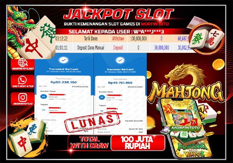 >> SELAMAT ATAS JACKPOT NYA USER ID: WxxxxDxxx6 PERMAINAN SLOT PG SOFT MAHJONG WAYS PADA TANGGAL 06 OKTOBER 2025 DENGAN TOTAL KEMENANGAN Rp.100.000.000 DI BAYAR LUNAS!