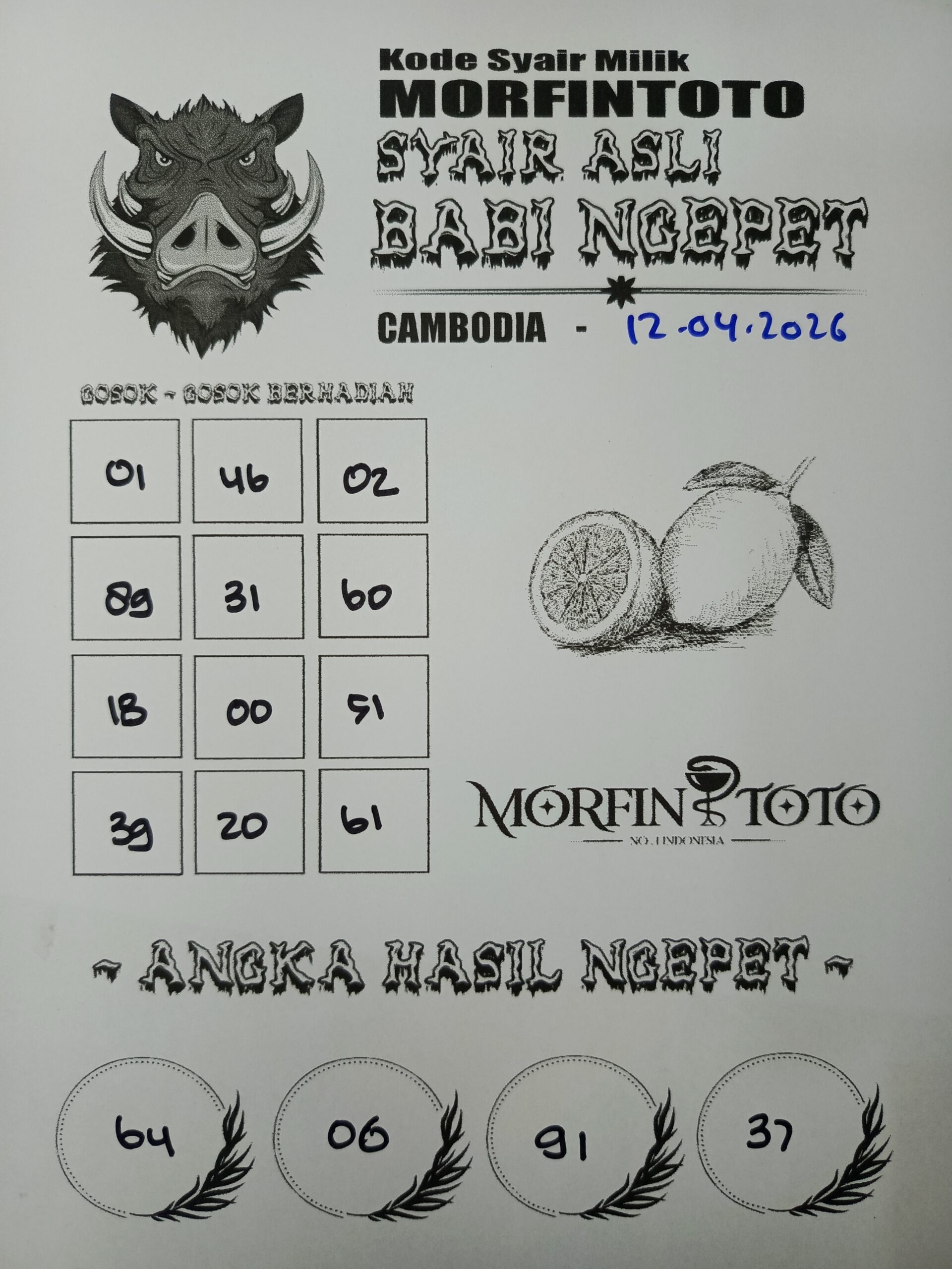 SYAIR TOGEL BABI NGEPET CAMBODIA 12 APRIL 2026