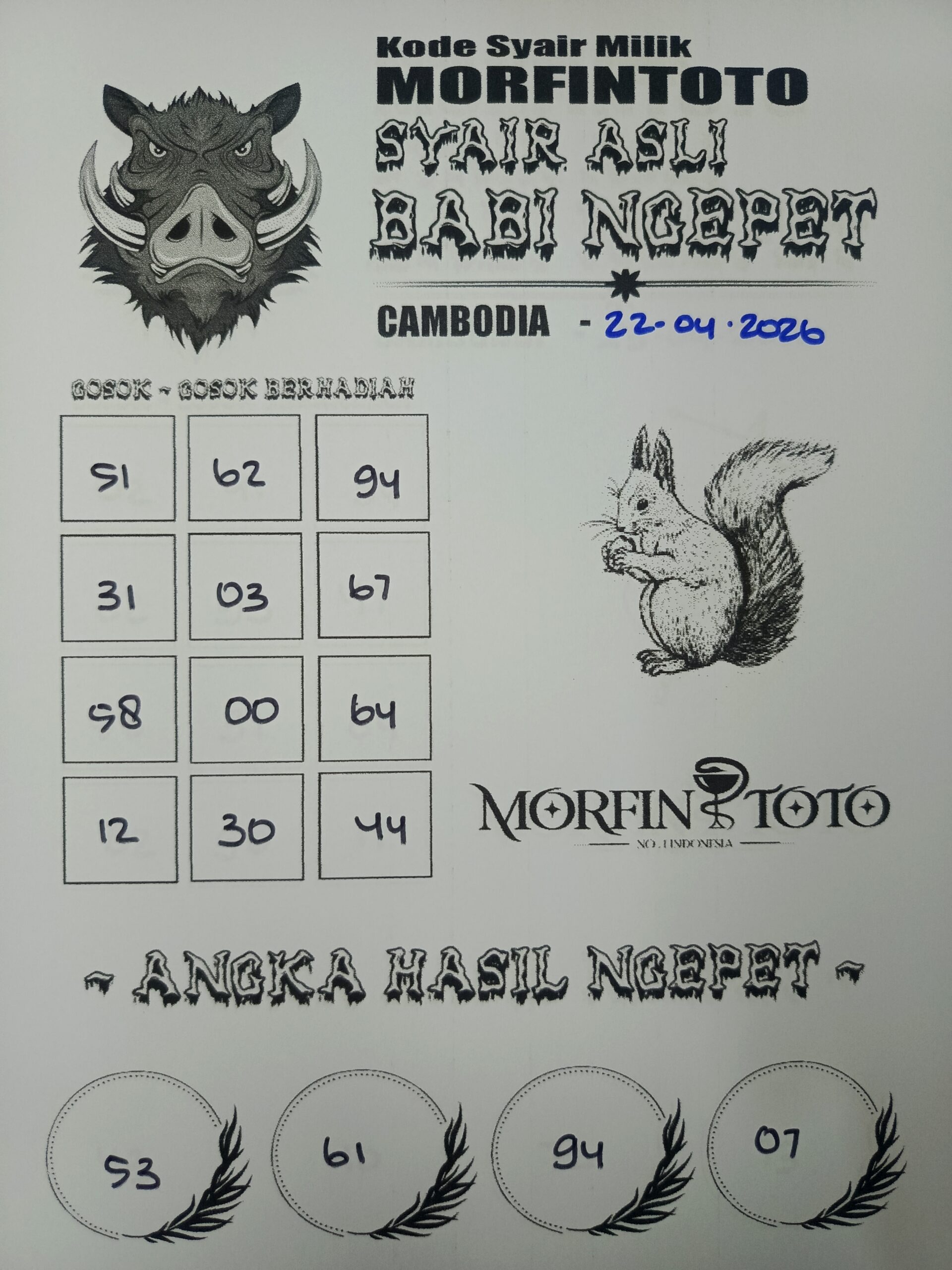 SYAIR TOGEL BABI NGEPET CAMBODIA 22 APRIL 2226