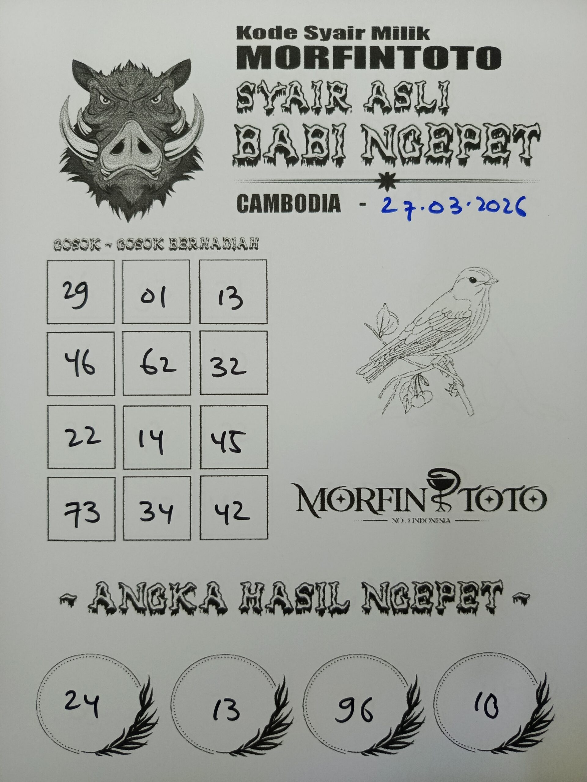 SYAIR TOGEL BABI NGEPET CAMBODIA 27 MARET 2026