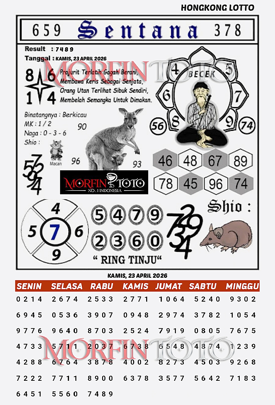 SYAIR TOGEL SENTANA  HONGKONG LOTTO 23 APRIL 2026