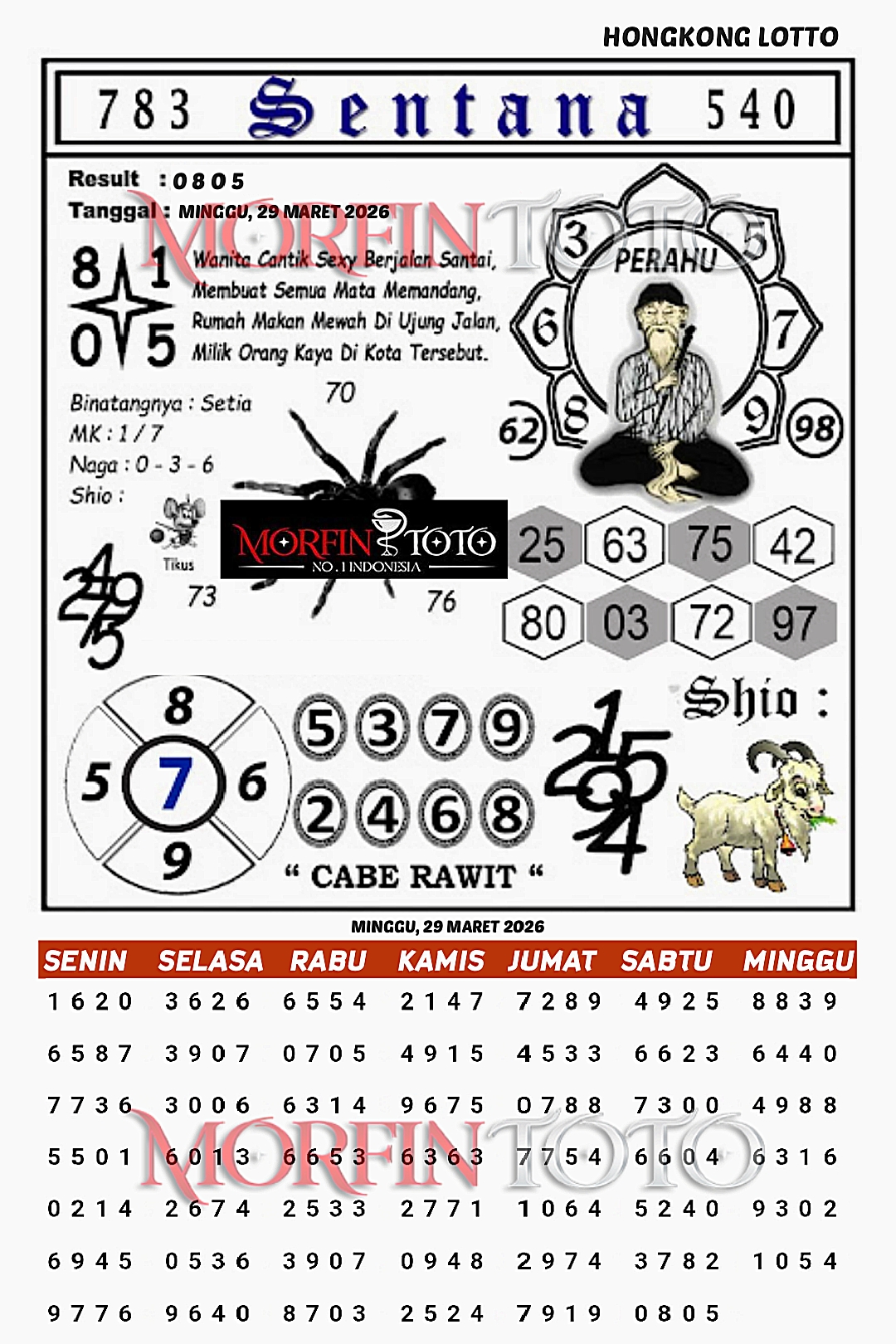 SYAIR TOGEL SENTANA  HONGKONG LOTTO 29 MARET 2026