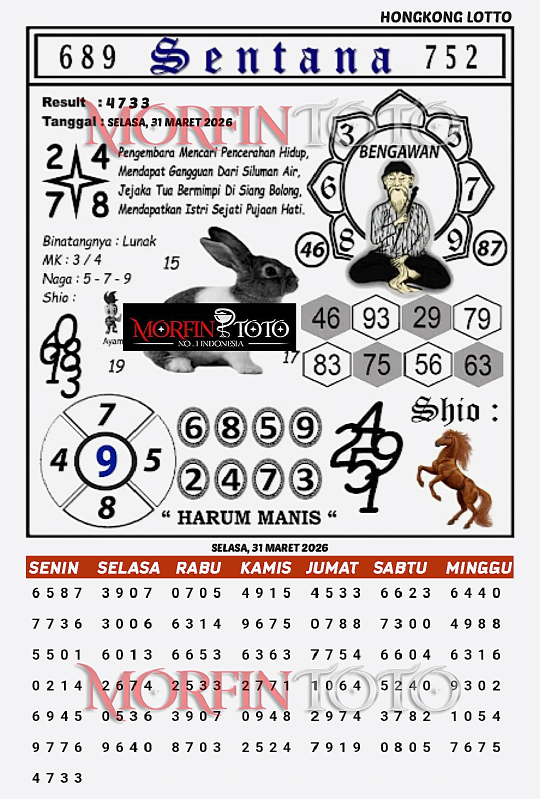SYAIR TOGEL SENTANA  HONGKONG LOTTO 31 MARET 2026
