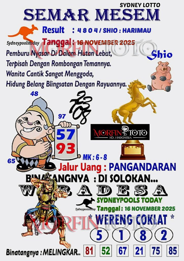 SYAIR TOGEL KAMPLENG SYDNEY 16 NOVEMBER 2025
