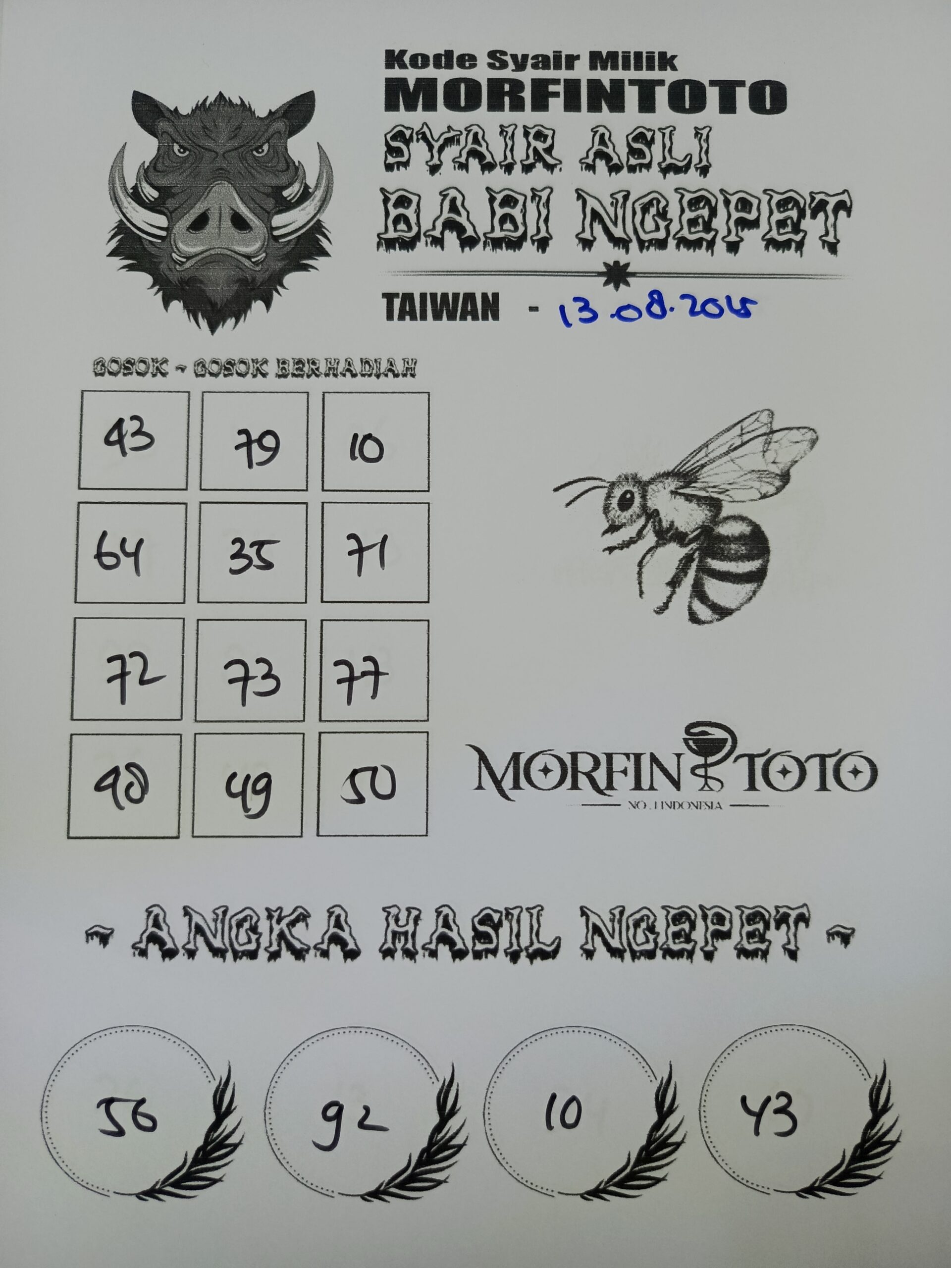 SYAIR TOGEL BABI NGEPET TAIWAN 13 AGUSTUS 2025
