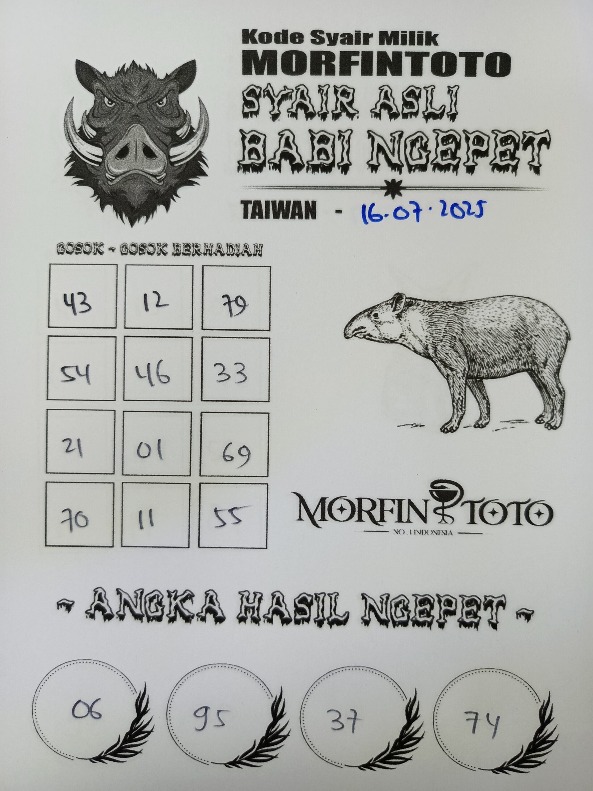 SYAIR TOGEL BABI NGEPET TAIWAN 16 JULI 2025